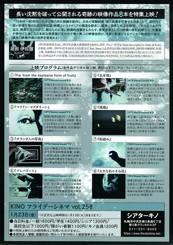 【KINOフライデーシネマ】次回1/23(金)『居田伊佐雄作品集』
