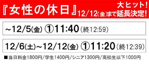 【12/12(金)まで延長決定!】 『女性の休日』11/15(土)公開