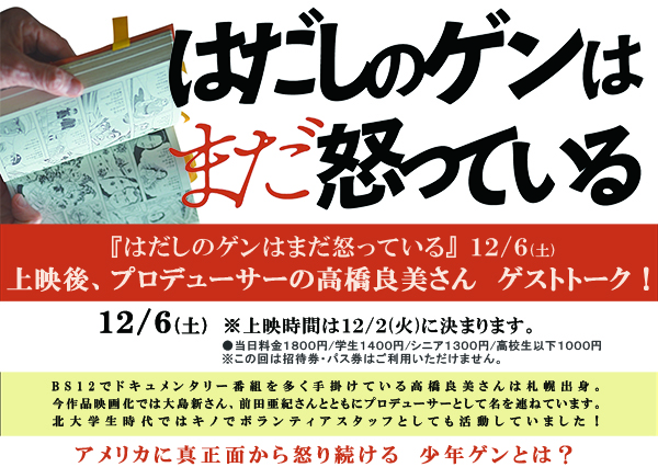 12/6(土)上映後、プロデューサーの高橋良美さんゲストトーク!