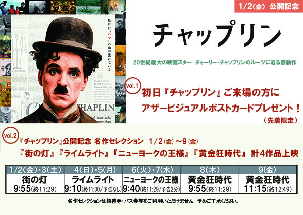 1/2(金)公開『チャップリン』初日入場者プレゼント&公開記念チャップリンセレクション上映
