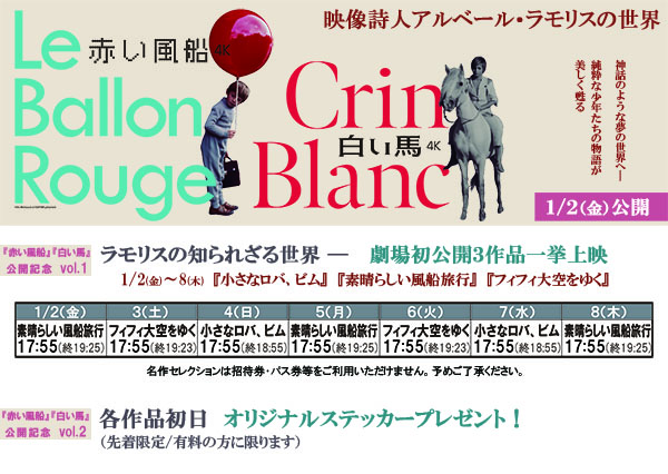 『赤い風船/白い馬』1/2(金) ⇒ 1/16(金) ロードショー