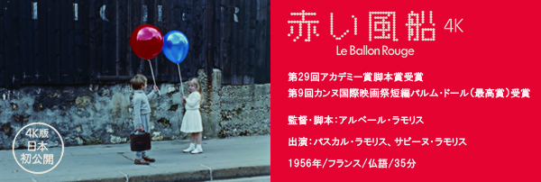 初公開から70年、時を超えた今だからこそ実現した4Kデジタル修復技術により、48歳という若さでこの世を去った伝説の映像詩人アルベール・ラモリスの名作『赤い風船』『白い馬』が、細部まで深く再現され、鮮明な美しさで甦る。特に『赤い風船』は、アンドレイ・タルコフスキー、侯孝賢、ウェス・アンダーソン、デイミアン・チャゼルなどの名監督たちが、本作品から影響を受け映画を製作・オマージュを捧げており、世界中にファンが多く、クリエイターたちの心を捉えて離さない唯一無二の作品として知られる。