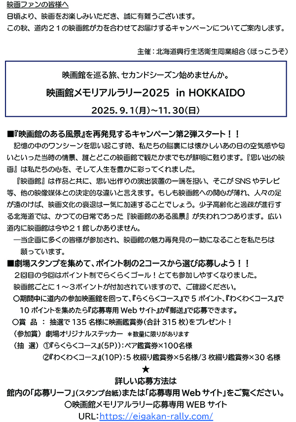 映画館メモリアルラリー当選者発表WEBサイトはこちらです