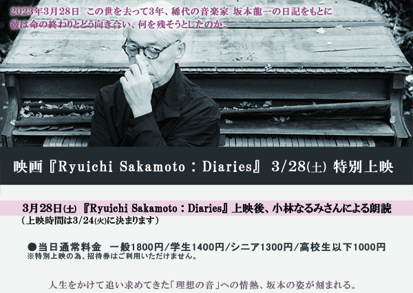 3/28(土)『Ryuichi Sakamoto:Diaries』特別上映
