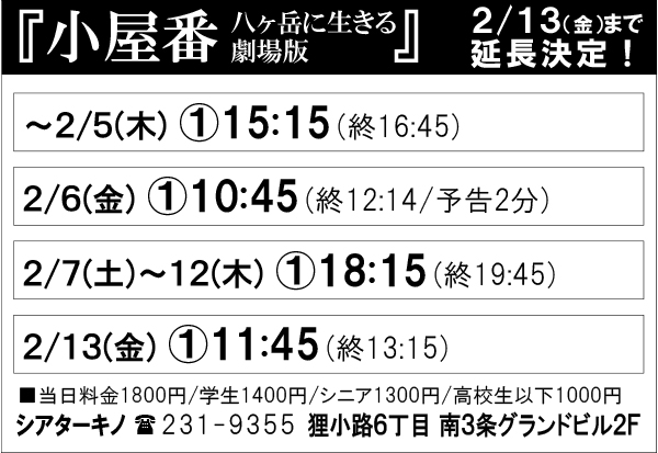 『小屋番 八ヶ岳に生きる 劇場版』~2/13(金)まで延長決定!